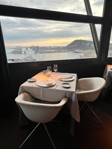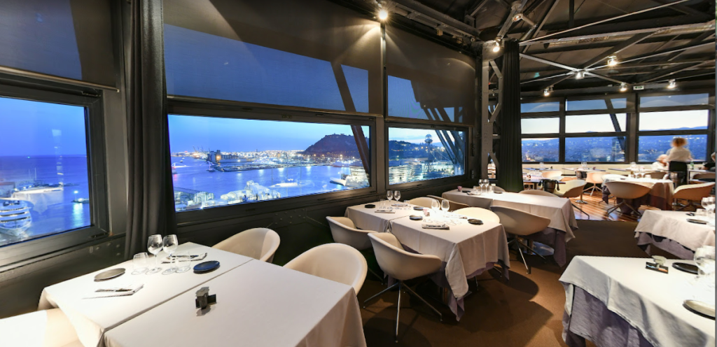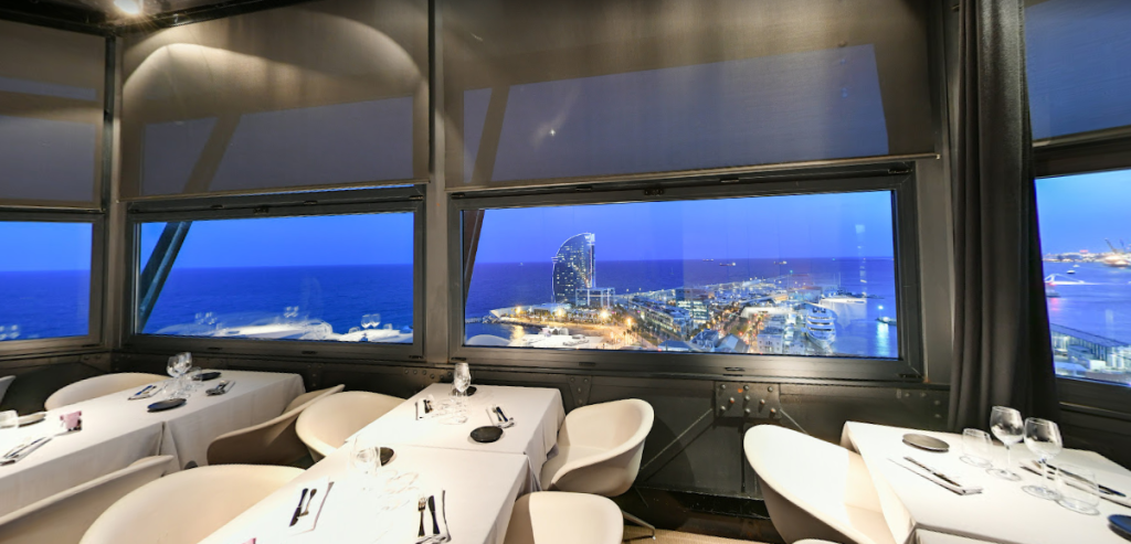 TORRE D’ALTA MAR. és un restaurant amb vista panoràmica de 360º a sobre del port, la platja, la ciutat, les muntanyes i tota la línia costera de Barcelona. A 75 metres d’altura i amb una superfície de 180m². Capacitat màxima de 120 persones amb possibilitat de tenir el restaurant en exclusivitat o reservar algunes de les seves zones. La cuina amb mans d’Albert Dolcet, apassionat de la cuina d’autor , practica una cuina creativa de factura impecable amb un producte fresc i saborós respectant les tradicions culinàries barcelonines.
